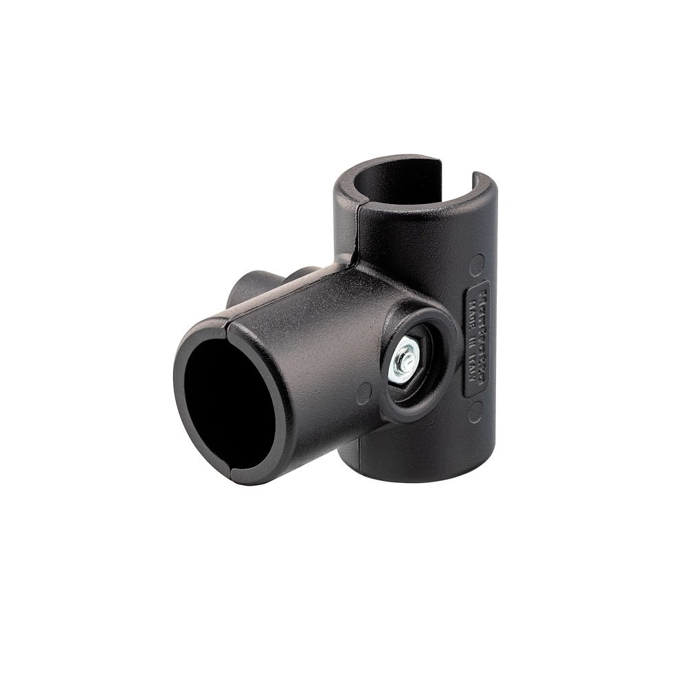 A Manfrotto MT004 T-bilincs egy robusztus, fekete alumínium derékszögű csatlakozó, amely két 35 mm átmérőjű csövet biztosan összekapcsol 90°-os szögben. Ideális egyedi merőleges keretek, háttértámaszok vagy felső szerelvények építéséhez. Ez a nagy teherbírású bilincs sziklaszilárd merőleges rögzítési megoldást kínál stúdióban és helyszíni felépítményekben egyaránt.