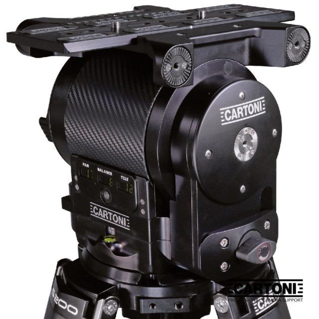A Cartoni kiemelkedő szabadalmaztatott ellensúlya 5 és 57 kg (11 és 126 font) közötti hasznos terhelést kompenzál, "tökéletes egyensúlyt" biztosítva a teljes 180°-os dőlésszögtartományban.