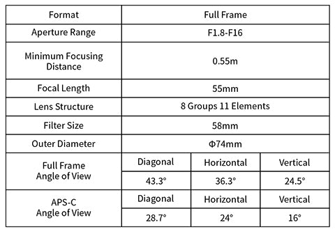 az 55mm F1.8 támogatja a 8K érzékelőkkel rendelkező nagy felbontású fényképezőgépeket. Képes a kép minden részletének helyreállítására.A nagy felbontás képes kielégíteni a magasabb képminőségi követelményeket.