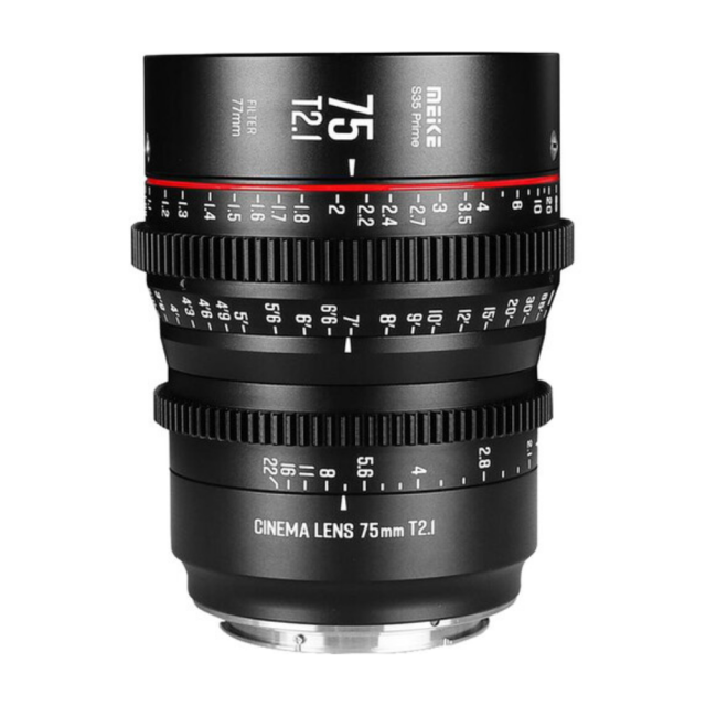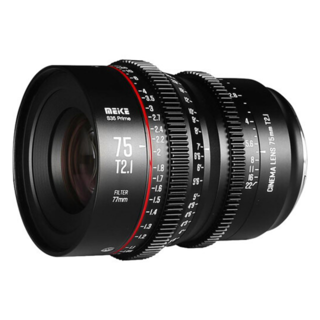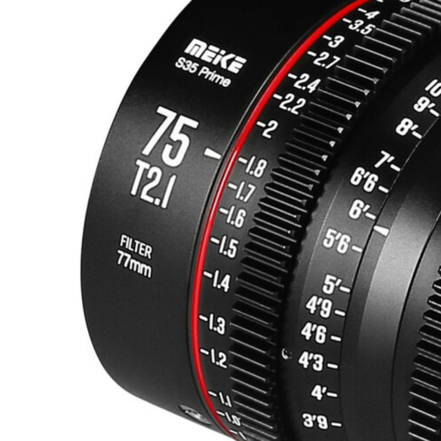 Meike 75mm T2.1 Super 35 Prime (PL Mount) A Meike harmadik cine objektívje a Super35-Prime Cine objektív sorozatban: a Meike 75mm T2.1. Objektív kompatibilis a Super 35 kamerákkal, és két objektívfoglalatban lesz kapható, PL/EF. Ez az objektív a Meike új Super35-Prime Cine objektív sorozatának egyik cine objektívje. 0,8 mm-es ipari szabványos fogaskerékkel rendelkezik a fókusz- és rekeszgyűrűn.