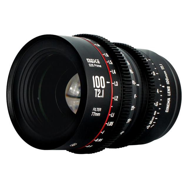 Meike Prime 100mm T2.1 Cine objektív Super 35 Frame Cinema Camera rendszerhez, mint például RED Komodo, BMPCC 6K, BMPCC 6K Pro, Z CAM S6 és Canon C70 stb.