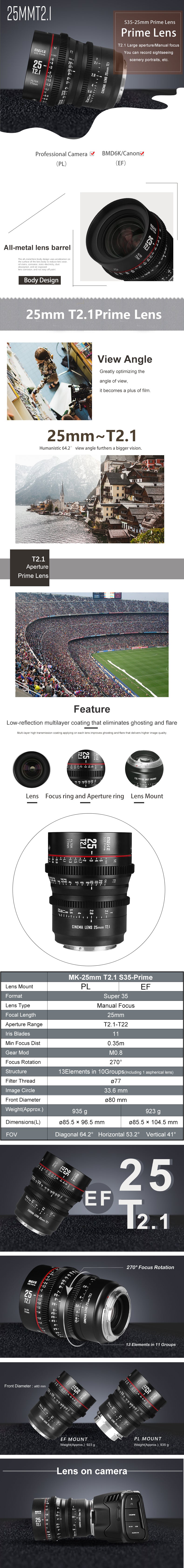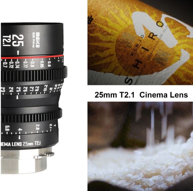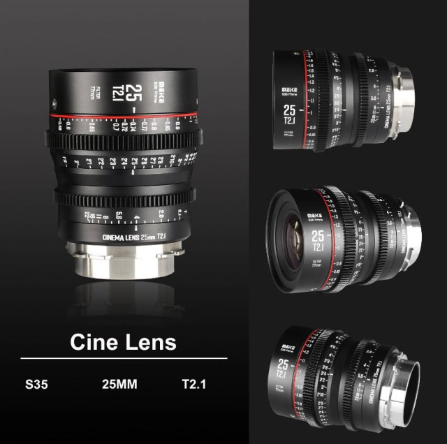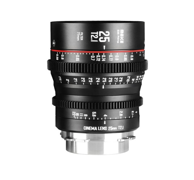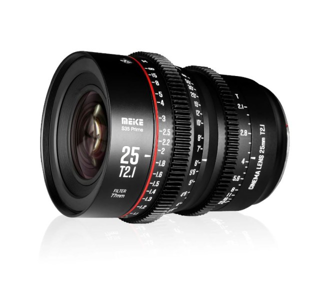 A Meike negyedik filmobjektívje a Super35-Prime Cine objektív sorozatban: a Meike 25mm T2.1. A 33,6 mm-es képkörével Super 35-ös formátumú kamerákhoz illeszkedik, és két foglalattal, PL/EF. Ez az objektív a Meike új Super35-Prime Cine objektív sorozatának egyik filmes objektívje. 0,8 mm-es ipari szabványos osztású fogaskerekekkel rendelkezik a fókusz- és rekeszgyűrűn.