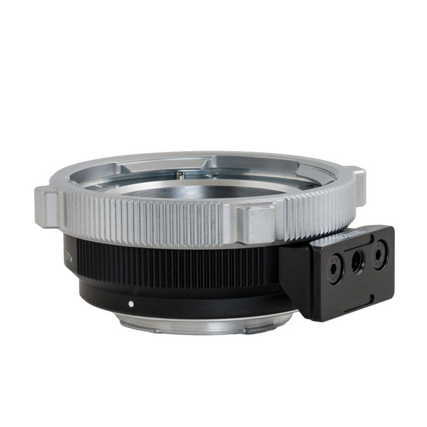 A tartós alumíniumötvözetből és sárgarézből készült, pozitív reteszelésű PL objektívtartóval ellátott adapter biztonságos objektívrögzítést és a filccel bélelt pelyhesítéssel csökkentett belső tükröződéseket biztosít. A levehető Arca-típusú állványláb kompatibilitást biztosít a különböző állványrendszerekkel, többek között az Arca Swiss, a Markins és a Photo Clam állványokkal.