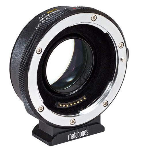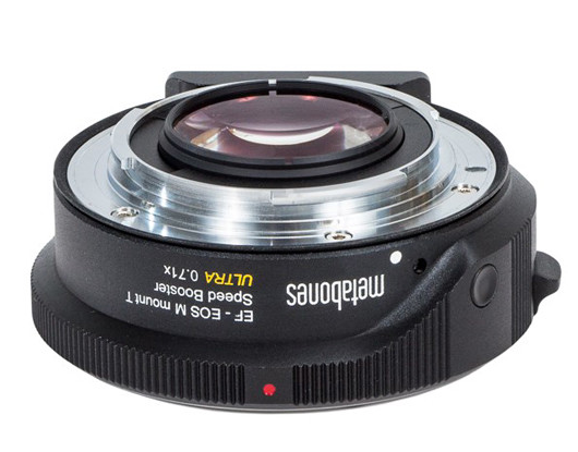 A Metabones T Speed Booster Ultra 0,71x adapter lehetővé teszi a Canon EF teljes képkocka objektívek Canon EF-M bajonettű fényképezőgépekre való felszerelését, miközben megőrzi az optikai teljesítményt és támogatja az elektronikus funkciókat. A teljes képkocka objektív képkörének az APS-C szenzorra történő kicsinyítésével az adapter hatékonyan 0,71-szeresre csökkenti a kivágási tényezőt, és egy fokkal növeli az objektív rekeszértékét, így maximalizálva a fényfelvételt és a látómezőt.