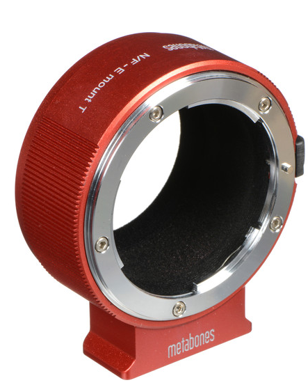 A Metabones Nikon F–Sony E-mount T adapter II (piros) lehetővé teszi a Nikon F objektívek precíz és tartós felszerelését a Sony E-mount fényképezőgépekre. A krómozott sárgarézből készült adapter belső felülete flokkolt bevonattal rendelkezik a tükröződések csökkentése érdekében, megőrzi a végtelen fókuszállást, és egy levehető Arca-típusú állványtalppal rendelkezik a sokoldalú felszerelés érdekében. Ez a kézi adapter nem támogatja az autofókuszt és az elektronikus rekeszvezérlést.