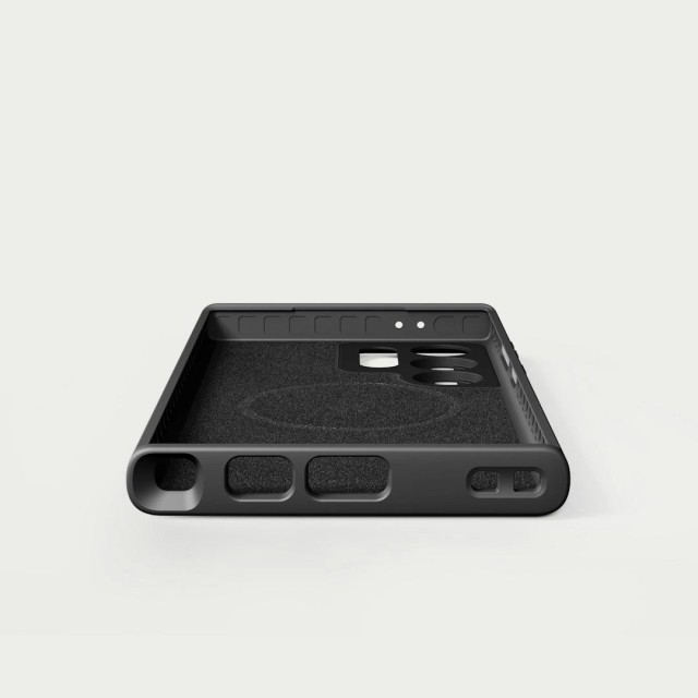 Saját TPU-keverékünkből készült, és számos belső légzsebbel rendelkezik, amelyek eloszlatják a rázkódásokat, ahelyett, hogy átadnák azokat a telefonodnak, miközben a súlyát is csökkentik. Szuper vékony vászon hátlapot adtunk hozzá, amely finom textúrájú tapadást biztosít, miközben lehetővé teszi, hogy mágneseink 20%-kal erősebbek legyenek. Ezután megerősített polikarbonátot adtunk a kamera interfészhez és a csuklópánt csatlakozóhoz, hogy biztosak lehessünk benne, hogy soha nem fogod leejteni a készülékedet.