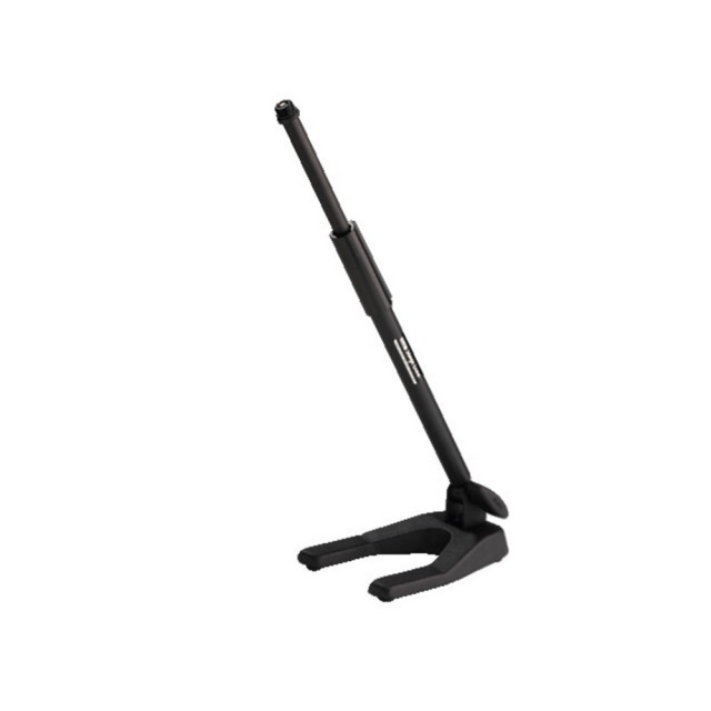 Asztali mikrofonállvány ötvözött alsó állvánnyal és összecsukható rúddal. Állítható magassággal: 375-590 mm és két menettel - 16 mm (⅝") és 9 mm (⅜").