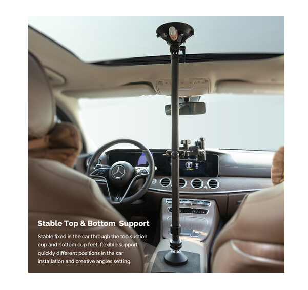 A MOVMAX állítható teleszkópos rúd okostelefon-rögzítővel professzionális, kézmentes megoldást kínál sima, kiváló minőségű POV felvételek készítéséhez okostelefonok vagy kompakt mobil eszközök segítségével a jármű szélvédőjén keresztül. A prémium szénszálból készült rúd biztonságos csavaros zárrendszerrel simán 75–125 cm-re nyújtható, így szedánoktól SUV-okig különböző járművek belső teréhez is alkalmazkodik. A felső tapadókorong megbízhatóan rögzíthető a napfénytető üvegéhez, míg az alsó talp a középkonzolhoz vagy a műszerfalhoz rögzíthető, így merev, rezgésálló keretet alkot, amely ideális nagy sebességű vagy terepjáró vezetéshez. A készlet tartalmaz egy rugós okostelefon-bilincset integrált 1 hüvelykes gömbfejjel (2,2–3,5 hüvelyk széles eszközökhöz alkalmas), egy 3,9 hüvelykes dupla gömbcsuklós kart 360°-os pásztázáshoz és teljes dőlésszög-vezérléshez, valamint egy rúdbilincset gömbfejjel másodlagos kiegészítők, például lámpák vagy mikrofonok rögzítéséhez. A rendszer tökéletes vloggerek, autóipari kritikusok és mobil filmesek számára, mivel pontos keretezést, minimális rázkódást és maximális kreatív rugalmasságot biztosít a dinamikus autóban történő felvételekhez.