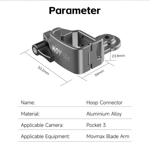 A MOVMAX Blade Arm Hoop Connector segítségével zökkenőmentesen integrálhatja DJI Osmo Pocket 3 gimbal kameráját a MOVMAX Blade Arm autós rögzítőrendszerbe. Ez egy kompakt, szürke alumínium bilincs, amely biztonságosan körbefogja az Osmo fogantyú alját, és egy rögzítő csavarral gyors, rezgésálló rögzítést biztosít, lehetővé téve a dinamikus, járműre szerelt felvételeket professzionális stabilitással.