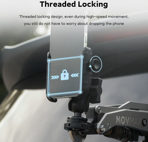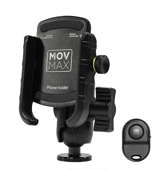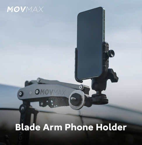 A MOVMAX okostelefon-rögzítő (86-0039) 2,4–3,5 hüvelykes telefonokat rögzít a Blade Arm karra egy 1/4"-20 gömbfejjel, amely teljes függőleges/vízszintes pozicionálást tesz lehetővé. Tartalmaz egy Bluetooth-távirányítót az autóban történő fényképezés/videofelvétel készítéséhez, és szilikon párnázással védi a készülékeket a karcolásoktól és biztosítja azok stabilitását a nagy mozgású járművlogok készítése során.
