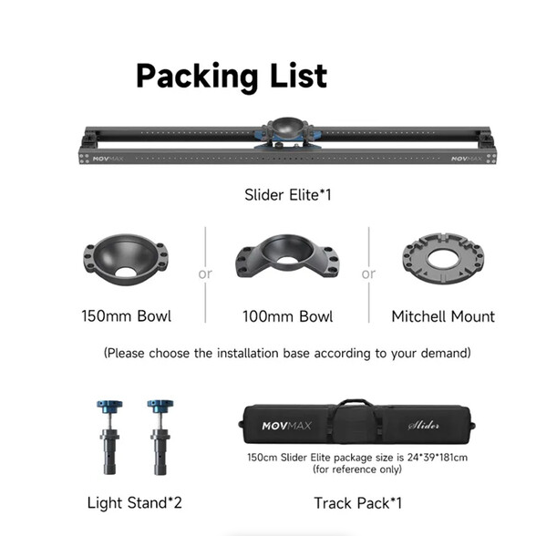 A MOVMAX Camera Slider Elite 35" rendkívül sima, csendes kézi csúszást biztosít 35,4 hüvelykes, masszív alumínium síneken, súrlódásalapú kocsival, amely akár 55,1 fontot is elbír, 100 mm-es tálcás rögzítéssel professzionális folyadékos fejekhez és kettős 5/8 hüvelykes állványadapterekkel – fék-/csillapító gombokkal és hordtáskával a könnyű szállítás és a filmkészítéshez szükséges követés érdekében a forgatáson.