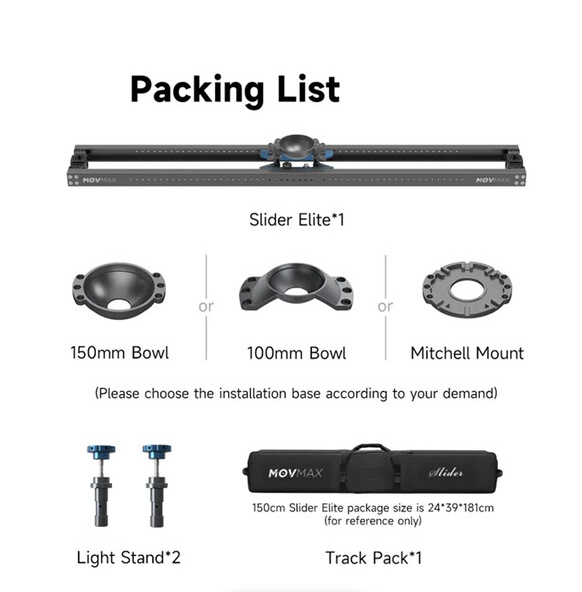 A MOVMAX Camera Slider Elite 82" egy professzionális minőségű, nagy teherbírású alumínium kameracsúszda, amelyet rendkívül sima, csendes csúszó felvételek készítésére terveztek. Lenyűgöző 82,6 hüvelykes mozgási távolságával és robusztus, súrlódásalapú csúszórendszerével akár 55,1 font (25 kg) terhelést is elbír integrált 100 mm-es tálcafoglalatával. Ideális filmekhez való követő felvételekhez, fékkarral és lengéscsillapítóval, két 5/8 hüvelykes fogadóval ellátott lámpaállvány-adapterrel, valamint könnyű szállításhoz védőhuzattal rendelkezik.