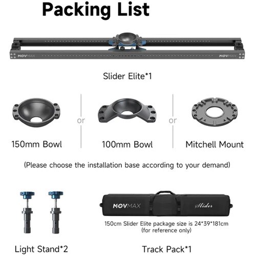 A MOVMAX Slider Elite (47") segítségével sima, filmszerű követő felvételeket készíthet, köszönhetően a tartós alumínium síneknek, a súrlódáson alapuló csúszórendszernek és a 150 mm-es tálcás rögzítésnek, amely nagy teherbírású kamerákhoz is alkalmas. 55 font teherbírással és a mellékelt világítóállvány-adapterekkel ez a csúszka professzionális teljesítményt és hordozhatóságot biztosít a csúcskategóriás produkciókhoz.