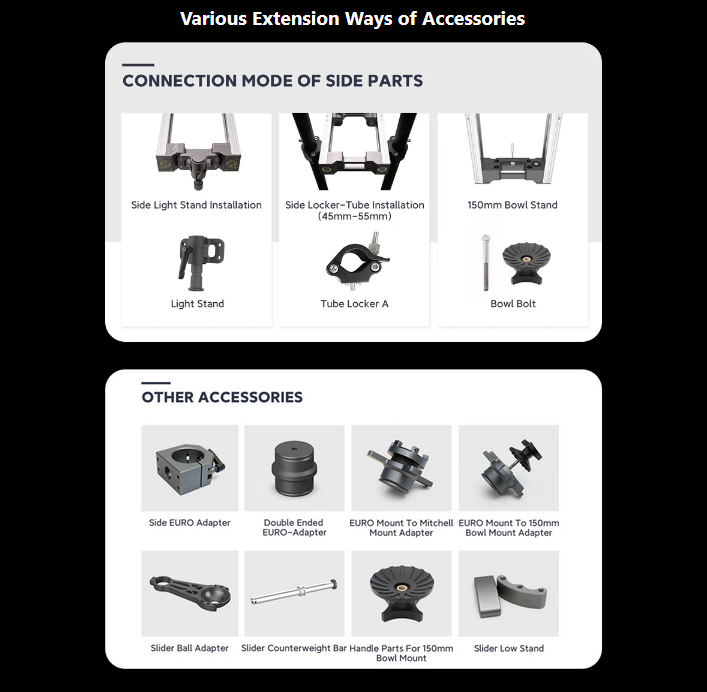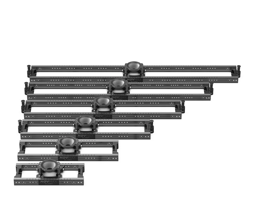 A professzionális filmkészítés igényeinek megfelelően kialakított MOVMAX Slider System kivételes stabilitást és folyékony mozgást biztosít többféle hosszúságban – 60 cm, 90 cm, 120 cm, 150 cm, 180 cm és 210 cm –, így ideális számos felvételi helyzethez. A csúszka kocsi Mitchell, 100 mm-es és 150 mm-es tálcákhoz is használható, így a 360°-os adapterrel párosítva 360°-os multifunkciós működést tesz lehetővé. Dupla üzemmódja lehetővé teszi a sima átállást a csúszka üzemmódra, amely ultraprecíz CNC-megmunkált alumínium, acél és réz alkatrészekkel biztosítja a sima mozgást, és a Bangi üzemmódra, amely a csúszkát állványokhoz, kerekes kocsikhoz vagy szerelvényekhez illeszti Euro-mount adapterek segítségével. Nagy szilárdságú, 7-es sorozatú repülőgépipari alumíniumötvözetből készült, tartós, merev és állandó teljesítményt nyújt. Az oldalsó kiterjesztésű mód lehetővé teszi a fényállványokra, almásdobozokra vagy Euro-adapterekre való felszerelést, így sokoldalú beállításokhoz használható. A MOVMAX Slider egy professzionális minőségű eszköz, amelyet úgy terveztek, hogy bármilyen produkciós környezetben pontos, filmszerű mozgást biztosítson.