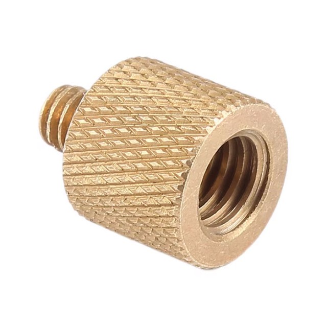 Aranyozott rézmenetes 3/8" - 1/4" reduktor, amely alkalmas kamerák, videokamerák, zsebrögzítők vagy kiegészítő rögzítők rögzítésére mikrofon- és stúdióállványokhoz.
