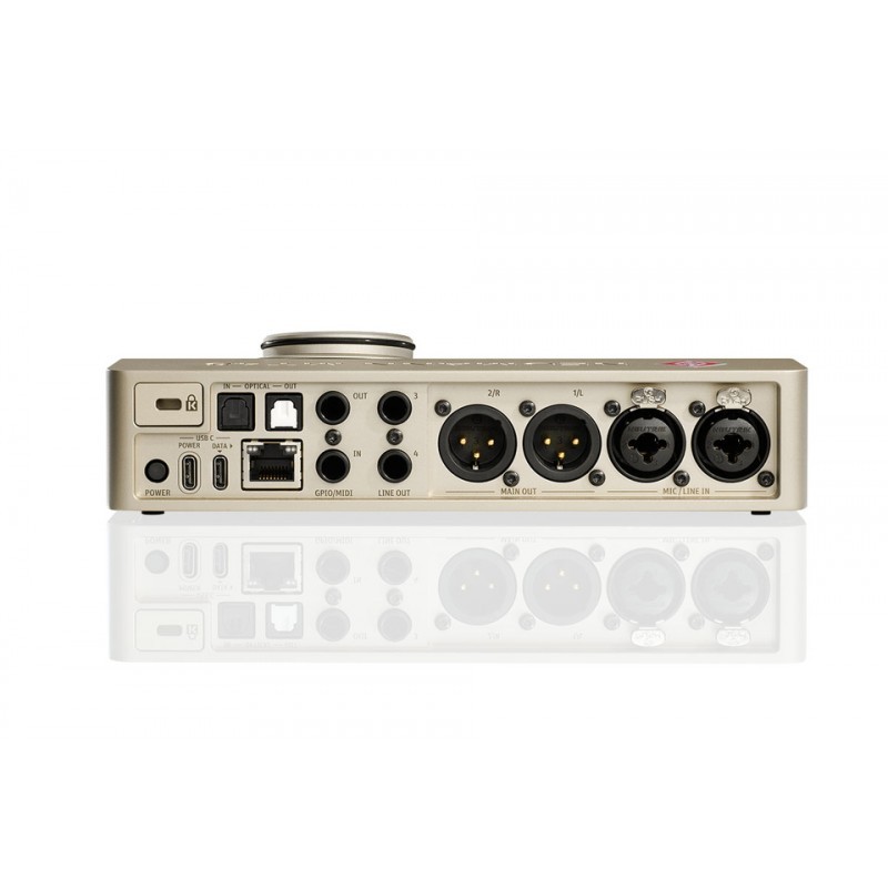 Az alapvető csatlakozási lehetőségek közé tartozik az USB-C (osztálykompatibilis, akár 32x16 csatorna 48 kHz-en; 16x16 96 kHz-en; magasabb frekvenciáknál csökkentett), optikai I/O (ADAT akár 8 csatorna 48 kHz-en, átkapcsolható S/PDIF-re 2 csatorna akár 96 kHz-en; 4/2 csatorna dupla/négyszeres sebességnél), AES67/RAVENNA hálózati bővítéshez, valamint MIDI/GPIO TRS-en keresztül (DIN5 MIDI-hez adapterek szükségesek).