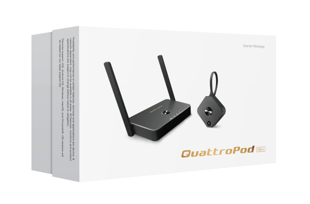 A NimbleTech QuattroPod Mini 1T1R egy nagy teljesítményű vezeték nélküli képernyőtükrözési megoldás, amelyet a vállalati, oktatási és hibrid munkakörnyezetekben történő 4K UHD prezentációk könnyed bemutatásához terveztek. Ez a csomag egy QuattroPod vevőegységet (R01) és egy HDMI adóegységet (T02) tartalmaz, amely rugalmasságot biztosít több felhasználó számára a vezeték nélküli csatlakozáshoz és tartalommegosztáshoz.