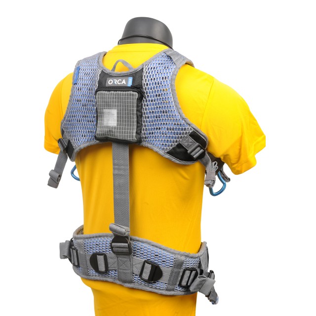 A könnyű, szellőztetett Orca OR-40 Sound Bag Harness bármelyik Orca hangtáskához csatlakoztatható, hogy felvétel közben tehermentesítse a felszerelés súlyát.