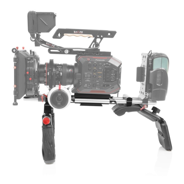 A SHAPE Shoulder Mount egy könnyűsúlyú (LWS) vállrögzítő rendszer a Panasonic AU-EVA1 kamerához. Tartalmaz egy EVAB15 alaplapot rúdblokkal, egy HAND5 gyorsfogantyút rúdblokkal és nyomógombos rendszerrel, egy pár 15 mm-es 18″ rudat és egy vállpárna-tartót.