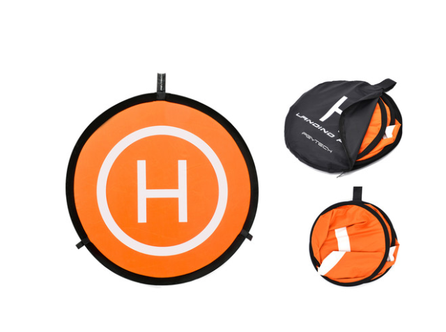 A hordozhatóságra tervezett leszállópálya kinyitáskor automatikusan formába ugrik, és kompaktra összecsukható, így a mellékelt cipzáras nylon tasakba könnyen elhelyezhető és szállítható. A nagyobb stabilitás érdekében a készlet három földbe szúrható csapszeget tartalmaz, amelyekkel a pálya rögzíthető, így megakadályozható, hogy a szél elsodorja. Könnyű, mégis tartós leszállópálya ideális terepi műveletekhez, és biztosítja, hogy drónja gimbalja és kamerája minden repülés során védve legyen.