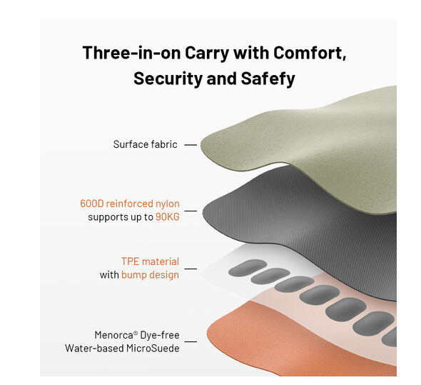A fonott Dyneema zsinór kiváló szilárdságot biztosít, míg a gyorscsatlakozók lehetővé teszik a fényképezőgép gyors rögzítését és levételét. A TPE bélés dombornyomott mintázata javítja a tapadást és megakadályozza a csúszást, még hosszan tartó használat esetén is. A 99–140 cm-re állítható heveder a nyak körül vagy a vállon is viselhető, így maximális sokoldalúságot biztosít.