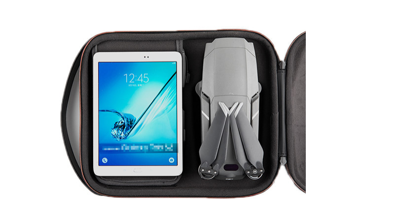 A nagyobb sokoldalúság érdekében a rekeszbe egy 7,9 hüvelykes tablet is befér, ha a távirányító joystickjait eltávolítja. A kettős cipzár és az IP34 víz- és porálló besorolás biztosítja, hogy felszerelése különböző környezetekben is védve legyen. A táska hordozófogantyúval és levehető vállpánttal is rendelkezik, így könnyen szállítható, akár helyi utazásról, akár a drón utazás közbeni szállításáról van szó.