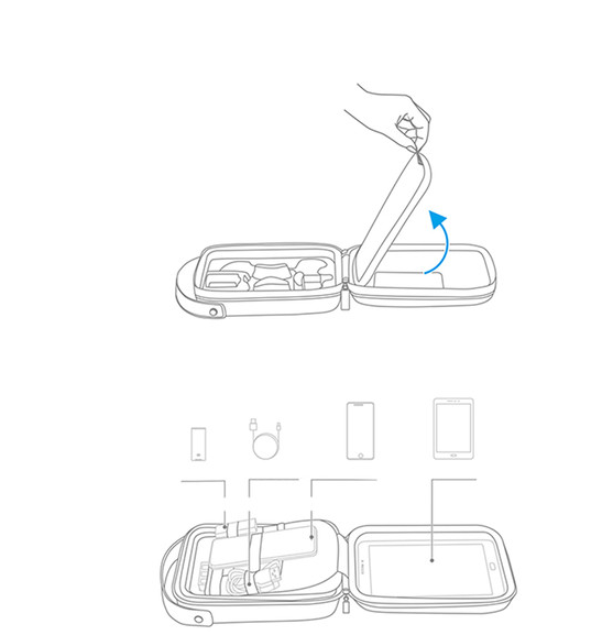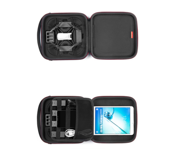 Fér el benne a drón, a propellervédő, az akkumulátorok, a töltőhub, az USB-kábelek, az SD-kártyák, az okostelefon és a 7,9 hüvelykes tablet