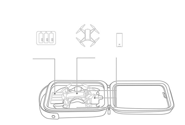 DJI Tello drón és kiegészítők számára kialakított, egyedi formájú rekeszek