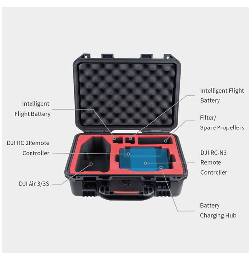 A belső, precízen megtervezett rekeszek biztonságosan tartják a DJI Air 3 vagy Air 3S drónt, a kompatibilis távirányítót, legfeljebb hat intelligens repülési akkumulátort (beleértve a drónban lévő egyet) és az alapvető kiegészítőket, mint például a töltőhubot, a tápkábelt, a szűrőket és a pótpropellereket. Az EVA-hab bélés extra párnázást biztosít, hogy a felszerelés biztonságban legyen szállítás közben.