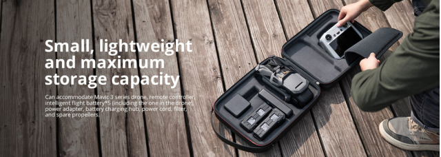Helyezhető benne a összecsukott Mavic 3, a DJI RC PRO/RC/RC-N1 vezérlő, 2 intelligens repülési akkumulátor, a töltőhub és a hálózati adapter