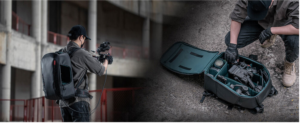 A szállításon túl ez a hátizsák beépített PGYTECH Beetle Clip segítségével mobil működési platformmá alakul, amely biztonságosan rögzíti a Ronin 4D főtestét a hátizsák belsejében. Ez a kialakítás csökkenti a szerkezet méretét, miközben javítja az egyensúlyt és a kényelmet a működés során. Az állítható kamera tartókapcsok, valamint a levehető mellkas- és derékpántok segítenek a súly egyenletes elosztásában, és jelentősen csökkentik a kezelő fáradtságát hosszabb felvételek során.