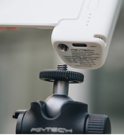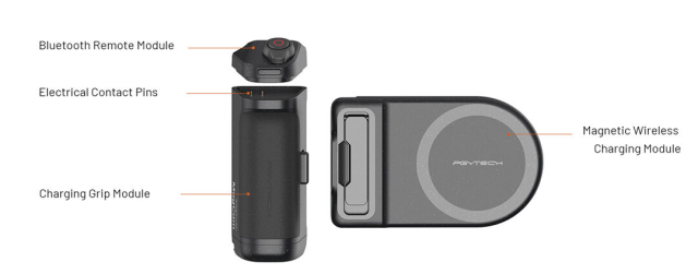 A töltő markolat modul egy 3000 mAh-s újratölthető lítium-ion akkumulátort tartalmaz, amely vezeték nélkül tölti a telefont a mágneses tartón keresztül, és hosszabb felvételek esetén power bankként is működik. A LED-es töltésállapot-jelző tájékoztatja a felhasználót a fennmaradó akkumulátor-élettartamról. A kétoldalas mágneses kialakítás lehetővé teszi további kiegészítők, például LED-es lámpa csatlakoztatását a kreatív beállítások bővítése érdekében.