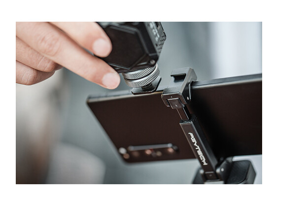 A tartó legfeljebb 3,5 hüvelyk széles okostelefonokat támogat, és 1/4"-20 menetes csatlakozóval biztonságosan rögzíthető állványokra. Arca-Swiss kompatibilis alapja lehetővé teszi a kompatibilis állványfejekre való gyors, egy lépésben történő felszerelést további lemezek nélkül. A tartalomkészítés javítása érdekében a tetején található hideg cipőfoglalat lehetővé teszi kiegészítők, például LED-es lámpák vagy külső mikrofonok csatlakoztatását.