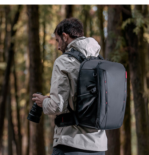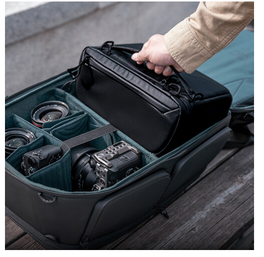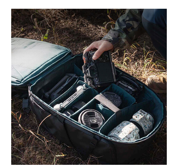 Tudományosan megtervezett belső tere külön helyet biztosít a fényképezőgép felszerelésnek és a személyes tárgyaknak, míg a vastag, rugalmas elválasztók biztonságos, testreszabható elrendezést tesznek lehetővé. A továbbfejlesztett elülső rekesz V- és H-alakú bővítést támogat, így ideális gimbal stabilizátor vagy további felszerelés tárolására. A széles hátsó nyílás lehetővé teszi a lapos csomagolást, a kettős gyors hozzáférési pontok pedig lehetővé teszik, hogy a hosszú fókuszú objektíveket gyorsan elővehesse a tetején vagy a jobb oldalon.