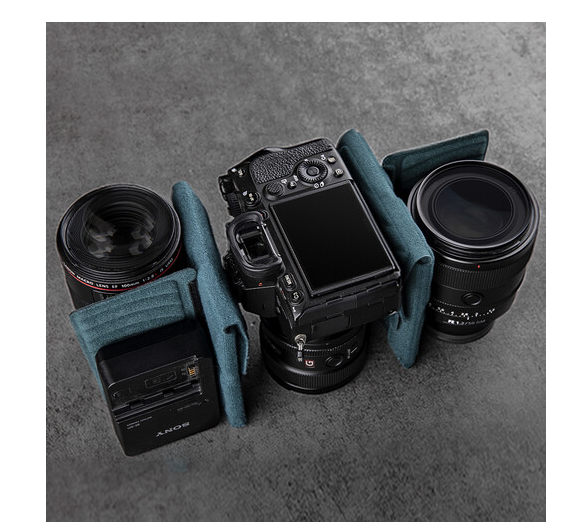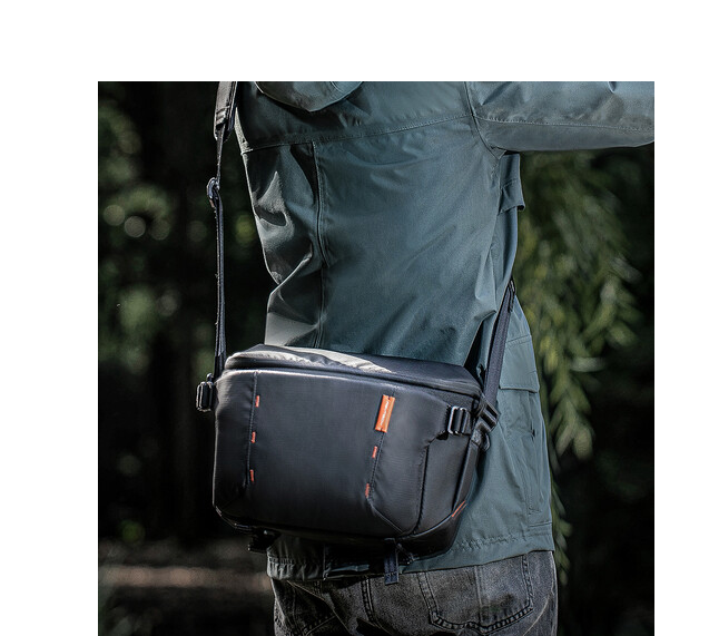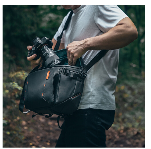 A középső rész kinyitásával a táska űrtartalma 11 literről 13,5 literre nő, így elfér benne egy 70-200 mm-es objektívvel ellátott fényképezőgép, két extra objektív és egy 14 hüvelykes MacBook Pro. Az alsó pánton állványt lehet rögzíteni, a kiegészítő hevederek pedig fényképezőgép-klipek vagy karabinerek rögzítésére szolgálnak. Az akkumulátor tároló/töltésjelző zseb biztosítja, hogy készülékei mindig feltöltve legyenek, míg a rejtett AirTag zseb lopás elleni védelmet nyújt. A vastag, lélegző, párnázott vállpánt növeli a kényelmet hosszabb használat során, a vízálló anyagok pedig megvédik felszerelését a váratlan időjárási körülményektől.