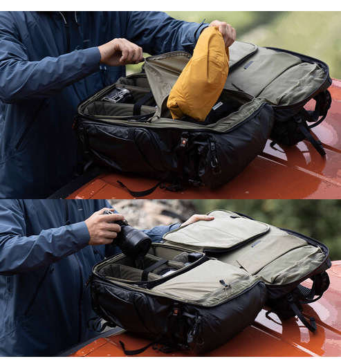 A PGYTECH OnePro Flex hátizsák kamerabetéttel (50 l, űrkék) azoknak a fotósoknak és videósoknak készült, akiknek sokoldalú, tartós és kényelmes megoldásra van szükségük felszerelésük szállításához. PU-bevonatú Cordura anyagból készült, vízálló hátizsák védi a fényképezőgép felszerelését, miközben a közepes méretű kamerabetét segítségével rendezett állapotban tartja azt. A felső rekesz 10 l-rel bővíthető, így extra tárolóhelyet biztosít kiegészítőknek vagy személyes tárgyaknak. Az oldalsó gyors hozzáférésnek köszönhetően könnyen elérhető a felszerelés, míg a repülőgépipari alumíniumból készült 3D íves váz, a 3D kontúrozott váll- és derékpántok, valamint az ergonómikus légáteresztő háttámla még hosszú szabadtéri utazások során is kényelmet biztosítanak. További jellemzők: oldalsó palackzseb, rejtett alsó zseb és 4 fokozatú háttámla-hosszúság-beállítás a személyre szabott illeszkedés érdekében.