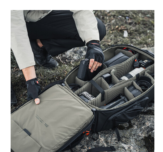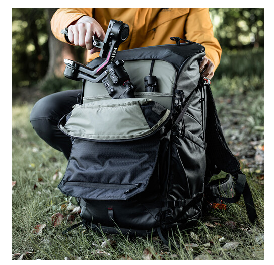 A PGYTECH P-CB-198 OnePro Focux hátizsákot azoknak a fotósoknak tervezték, akiknek megbízható felszerelésvédelemre és szabadtéri sokoldalúságra van szükségük. A 35 literes űrtartalmú hátizsákban akár két DSLR vagy tükör nélküli fényképezőgép, tizenegy objektív és egy DJI drón is elfér, miközben még hely marad személyes tárgyak, például ruhák, harapnivalók és kempingfelszerelés számára is. A bővíthető elülső rekesz nagyobb kiegészítők, például gimbalok vagy állványok tárolására alkalmas, a több zseb és rögzítési pont pedig lehetővé teszi a túrabotok, jégcsákányok vagy alvómatracok biztonságos szállítását.