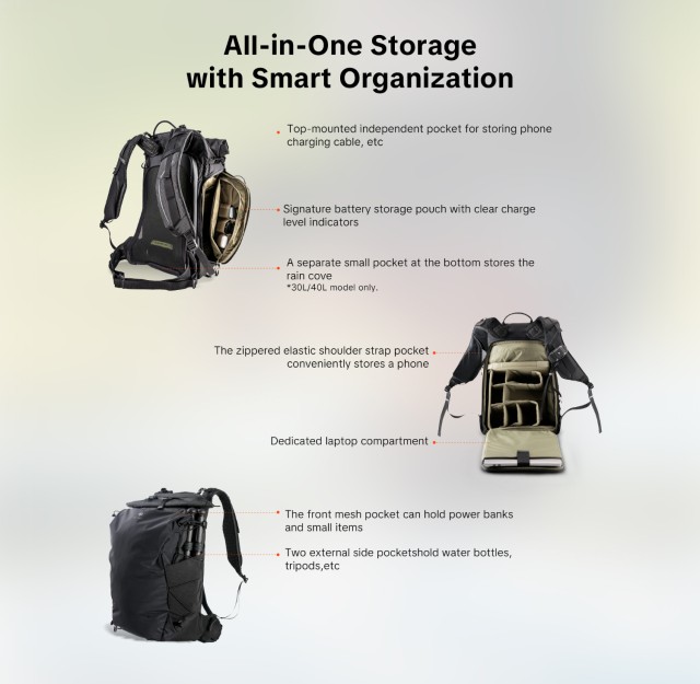 Az innovatív, oldalsó gyors hozzáférési panel, amely megkülönbözteti a többi könnyű fotós hátizsáktól, lehetővé teszi, hogy másodpercek alatt elővegye a fényképezőgépét anélkül, hogy le kellene vennie a hátizsákot.