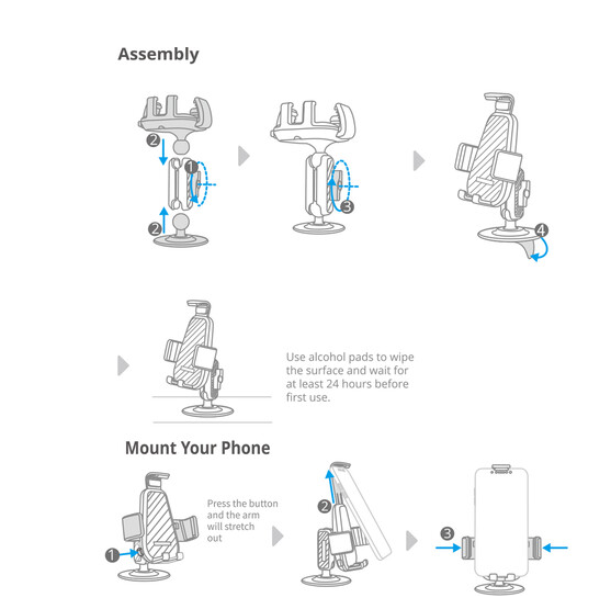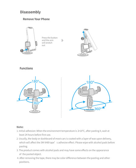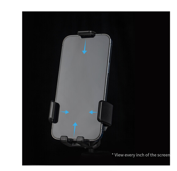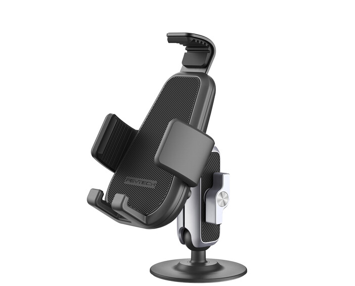 A teljes körű telefon tartó csúszásgátló gumibevonatú talpakkal, oldalsó karokkal és felső szorítóval rögzíti a készüléket, biztosítva, hogy a telefon szilárdan a helyén maradjon. A reteszelhető kettős gömbfejű mágikus kar 180°-os dőlést és 360°-os forgást tesz lehetővé, így teljes mértékben szabályozhatja a látószöget. A nyomógombos gyorskioldó gomb segítségével a telefon egy kézzel könnyen behelyezhető és eltávolítható, míg a portkivágás lehetővé teszi, hogy a töltő- vagy adatkábelek használat közben is csatlakoztatva maradjanak.