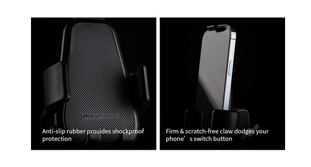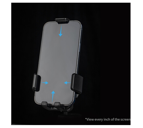 A teljes körű okostelefon-tartó csúszásgátló gumibevonattal a hátoldalon, a karokon és a felső bilincsen biztosan a helyén tartja a készüléket. Az integrált kettős reteszelő gömbfejű mágikus kar 180°-os dőlésszöget és 360°-os forgást tesz lehetővé, így pontos szögszabályozást biztosít navigáláshoz, felvételhez, videohívásokhoz vagy tartalom megtekintéséhez.