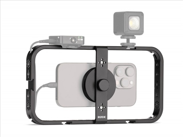 A RØDE Phone Cage segítségével okostelefonját professzionális filmeszközzé alakíthatja. Ez a mágneses mobil filmeszköz rendkívül biztonságos rögzítési rendszerrel rendelkezik iPhone®, MagSafe® kompatibilis okostelefonok vagy más mágneses tokos okostelefonok rögzítéséhez.