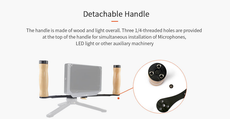 A Portkeys HD-1 egy könnyű, alumíniumötvözetből készült, fa fogantyúval ellátott kézi rendezői monitor tartó, amely több mint 17 1/4 hüvelykes csavarnyílásokkal rendelkezik 7 hüvelykes monitorok és kiegészítők felszereléséhez. Méretei 360x132x38 mm, nettó tömege 300 g. Kényelmes, tartós és széles körű kompatibilitást…