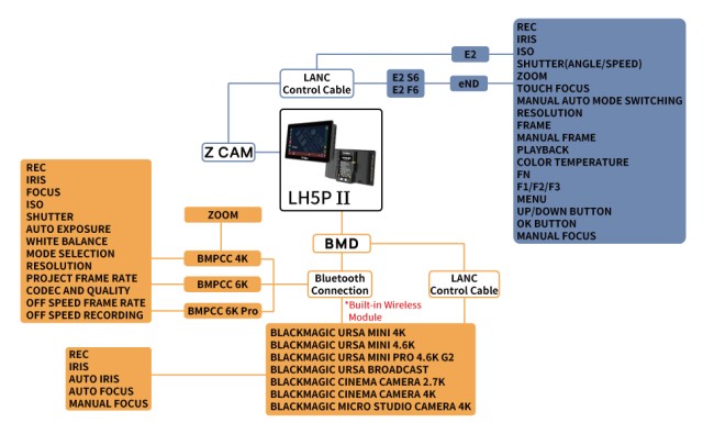 Az LH5P II egy 5,5 hüvelykes kameramonitor, amely 1920x1080-as felbontású IPS-kijelzővel, 2200 cd/m2 fényerővel és 1000:1 kontrasztaránnyal, HDMI bemenettel/kimenettel, akár 4Kp24/UHDp30 támogatással, masszív alumíniumötvözetből készült testtel és távoli kameravezérlési funkcióval (vezeték nélkül Bluetooth-on keresztül vagy opcionális kábelezéssel a kamera típusától függően) rendelkezik.