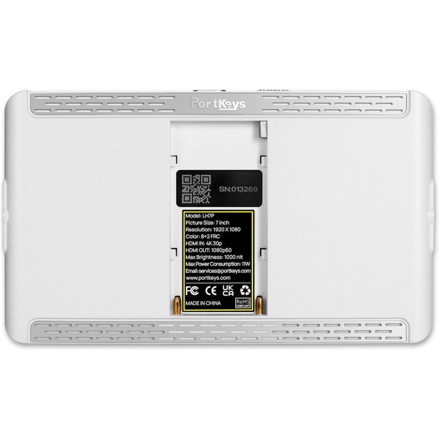 A Portkeys LH7P egy 7″-es, nagy fényerejű (1000 cd/m2) érintőképernyős kameramonitor vezeték nélküli távirányítóval a Blackmagic Design BMPCC 4K/6K/6K Pro és Sony kamerákhoz (A1, A9II, A7C, FX3/FX30, RX10, A7SIII, A7MIV, RX0, A7MIII stb.). Emellett gazdag szoftveres funkciókat kínál, többek között a videó és a JPG referenciakép összehasonlítását, a 4K 1080-ra történő átmintavételezést, a videó vágást, az anamorfikus képkorrekciót, a 3D LUT korrekciót, a függőleges videofelvételi módot stb. Fehér opció.