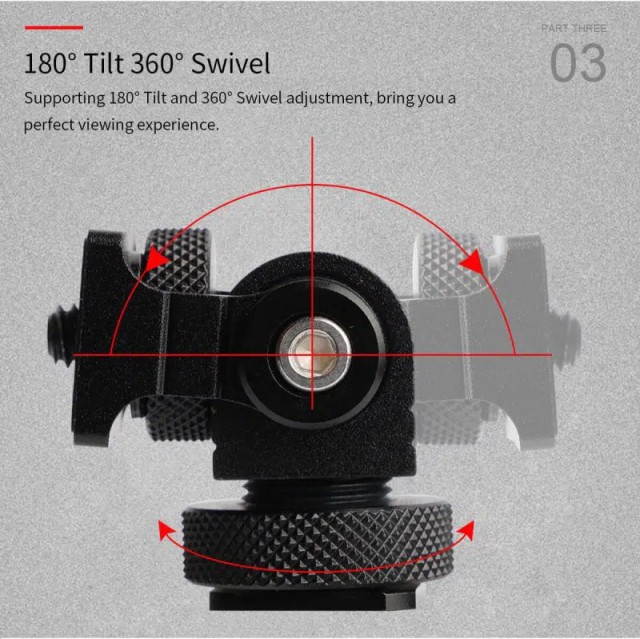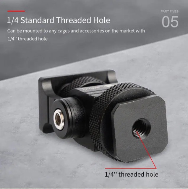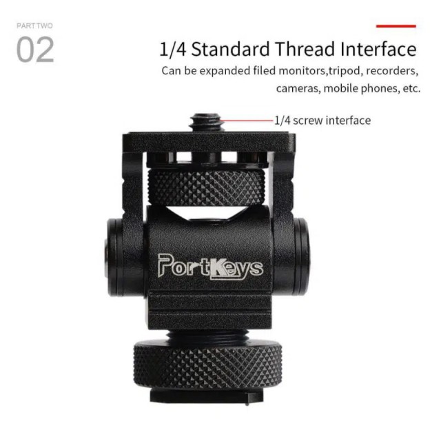 A szabványos 1/4" menetes interfésszel, bővíthető iktatott monitorok, állványok, felvevőgépek, kamerák, mobiltelefonok stb.