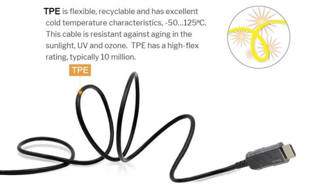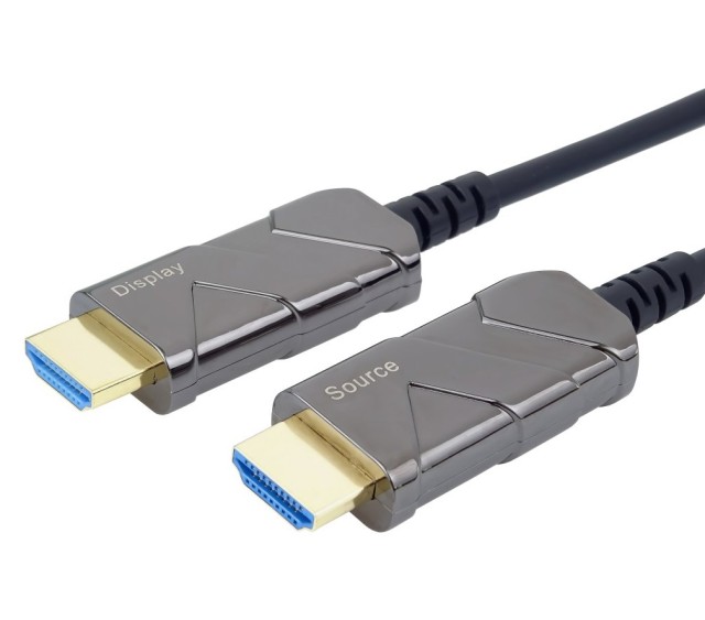 Az optikai hibrid HDMI™ kábel (optikai szál + réz) nagy távolságokon, akár 100 m-es távolságokon keresztül is összeköti az eszközöket adatvesztés nélkül - még a nagy elektromágneses sugárzással terhelt területeken is. Különösen vékony és könnyű felépítésének köszönhetően tökéletesen alkalmas mindenféle telepítéshez.