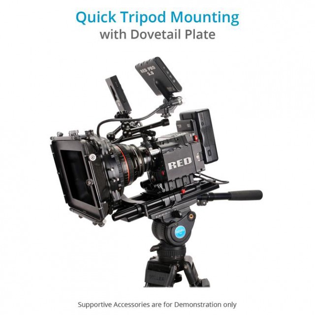 Erre a sokoldalú alaplemezre bármilyen kamerát könnyedén rögzíthet, például nagy teherbírású kamerákat, mint az ALEXA, vagy könnyű kamerákat, mint a Sony F5.