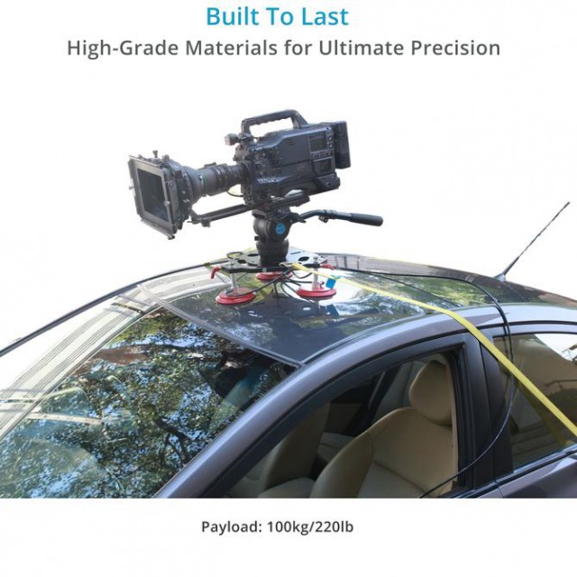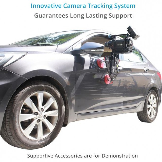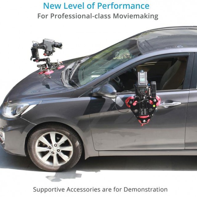 Szeretne egy nehezebb filmes fényképezőgépet autóra, teherautóra, hajóra vagy bármilyen nem porózus felületre szerelni? A Proaim AirGrip, egy sokoldalú kameratartó rendszer, amely a sima, professzionális megjelenésű felvételek széles skáláját ígéri. A rögzítőlemez befogadja a kamerát közvetlenül, vagy ékkel/dőlőlappal szerelve, vagy a legnépszerűbb 3 tengelyes gimbal stabilizátorokkal, például a DJI Ronin és Movi modellekkel együtt, járműre szerelve. A három tapadókorong legfeljebb 100 kg / 220 font maximális hasznos terhet képes szállítani; és egy legfeljebb 200 km/h sebességgel haladó járművet.