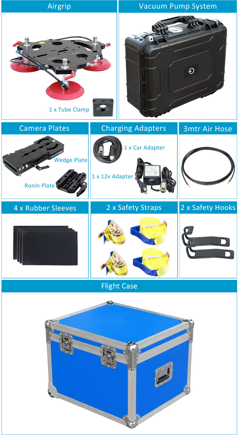 Az AirGrip egyedülállóan elektromos szivattyúrendszerrel rendelkezik, amely a beépített akkumulátorrendszernek köszönhetően automatikusan fenntartja a vákuumnyomást. A vákuumszivattyú-rendszer akár 10 napig is képes folyamatosan fenntartani a vákuumot. A szivattyúrendszer csatlakoztatható konnektorba és közvetlenül az autóba is a töltéshez, mindkét szükséges kábelt tartalmazza a készlet.