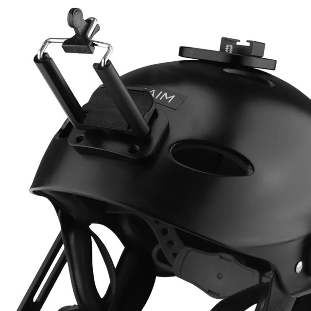 A sisak kameratartóval van felszerelve, amelynek mindkét oldalán kétpontos állító gombok találhatók a kamera biztonságos rögzítéséhez és a legjobb POV felvételi szög beállításához.